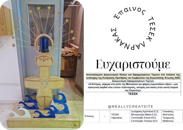 ΕΠΑΙΝΟΣ ΕΠΑΙΝΟΣ ΓΙΑ ΤΟΥΣ/ΤΙΣ ΜΑΘΗΤΕΣ/ΜΑΘΗΤΡΙΕΣ ΤΩΝ ΕΦΑΡΜΟΣΜΕΝΩΝ ΤΕΧΝΩΝ Η Κύπρος, γέφυρα στο μπλε της Μεσογείου και φάρος ευρωπαϊκών αξιών Η κατασκευή μας ...